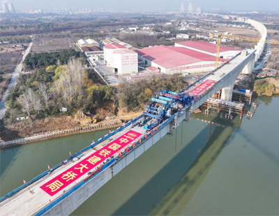 沪渝蓉高铁通泰扬特大桥跨太平河桥精准合龙