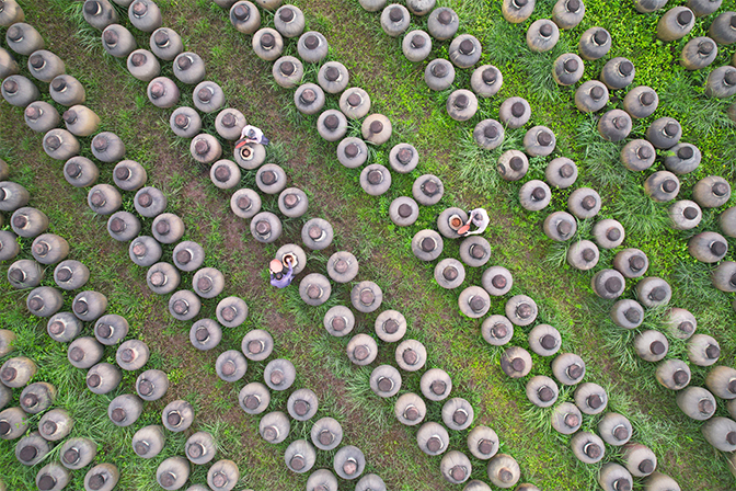 2018年9月5日,江苏连云港市猴嘴街道大浦工区,工人在盐田里进行"秋扒"作业。