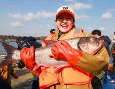 2月17日,北京一家老字号食品企业的工人在生产车间内查看元宵的大小是否均匀。