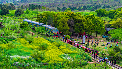 2019年10月19日,在本次主题展的陕西省西安市浐灞生态区摄影作品展区内彩虹桥、雁鸣湖公园、桃花潭公园、灞柳基金小镇、罗曼小镇、水岸新居……,这些当地的标志性建筑一一呈现,吸引了不少观众驻足。(光明网记者潘迪摄/光明图片)