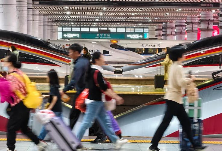 2026年2月22日,外出务工人员在贵州省黔西南布依族苗族自治州兴义市兴义南站乘坐高铁准备出发。(刘朝富摄/光明图片)