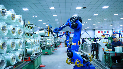 2026年2月24日,在重庆市黔江区高新区一玻纤生产企业生产车间,机器人在转运玻纤产品。(杨敏摄/光明图片)