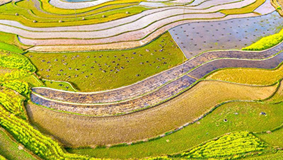 早春时节,地处乌蒙山区的贵州省黔西市锦星镇洪湖村,高山梯田层层叠叠,正在蓄水备耕,田园宛如画卷。