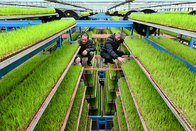 当地通过智能化育秧工厂开展早稻集中育秧,提高水稻秧苗质量和水稻生产机械化作业水平,为粮食生产高产增效打好基础。