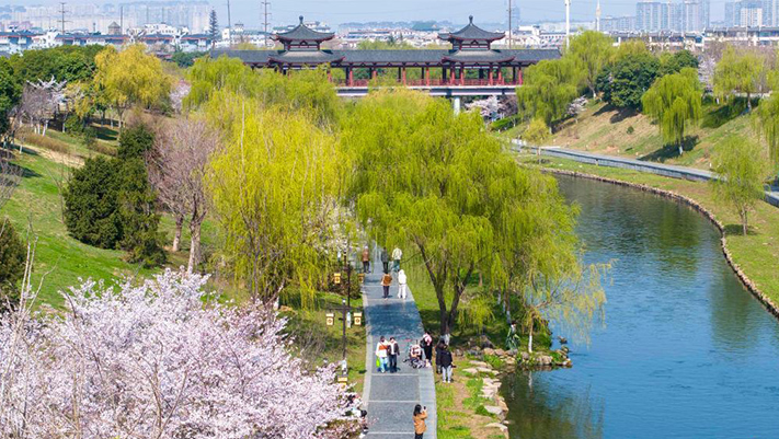 3月20日,河南省洛阳市洛浦公园内樱花竞相绽放,景色怡人,吸引市民驻足观赏。(张怡熙摄/光明图片)