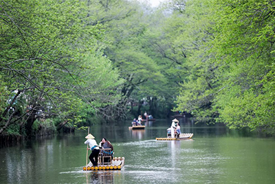 4月4日,安徽省黄山市徽州区西溪南湿地春意盎然,吸引众多市民和游客前来踏青游玩,乐享惬意时光。(樊成柱摄/光明图片)