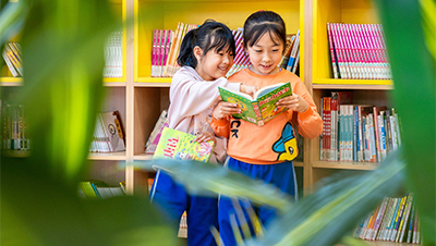 内蒙古呼和浩特市玉泉区通顺街小学图书馆内,学生们正在阅读书籍。