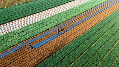 山东省临沂市平邑县地方镇,农民为播种的春花生覆盖地膜。
