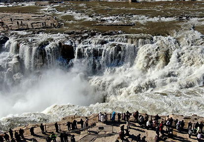 黄河壶口瀑布现“冰瀑玉壶”壮美景色