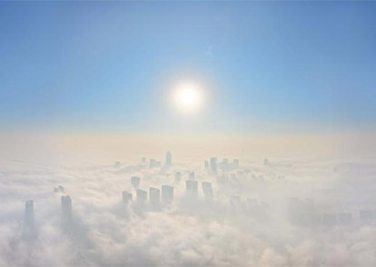 晨雾绕城别样美