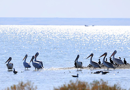 国家一级野生保护动物鹈鹕现身新疆乌伦古湖