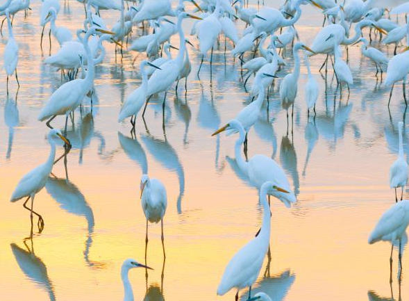 鄱阳湖湿地生态美 白鹭翩翩舞